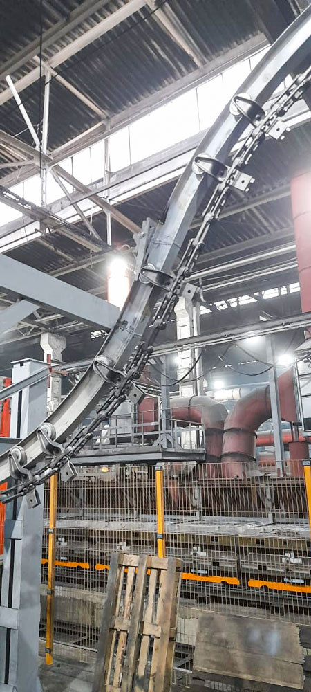 Конвейер используется для внутрицеховой транспортировки изделий, которые неудобно или невозможно перемещать напольными средствами. Подвесная схема освобождает полезную площадь пола и упрощает организацию технологических потоков.
