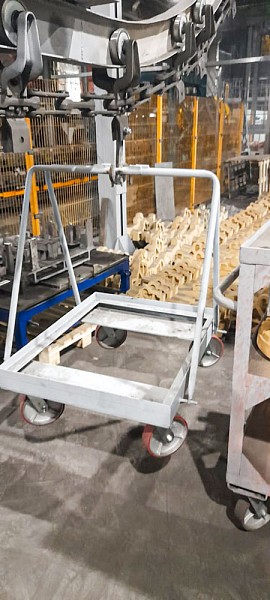 - Грузовые тележки: роликовые узлы с подвесами для крепления изделий или транспортных рам.